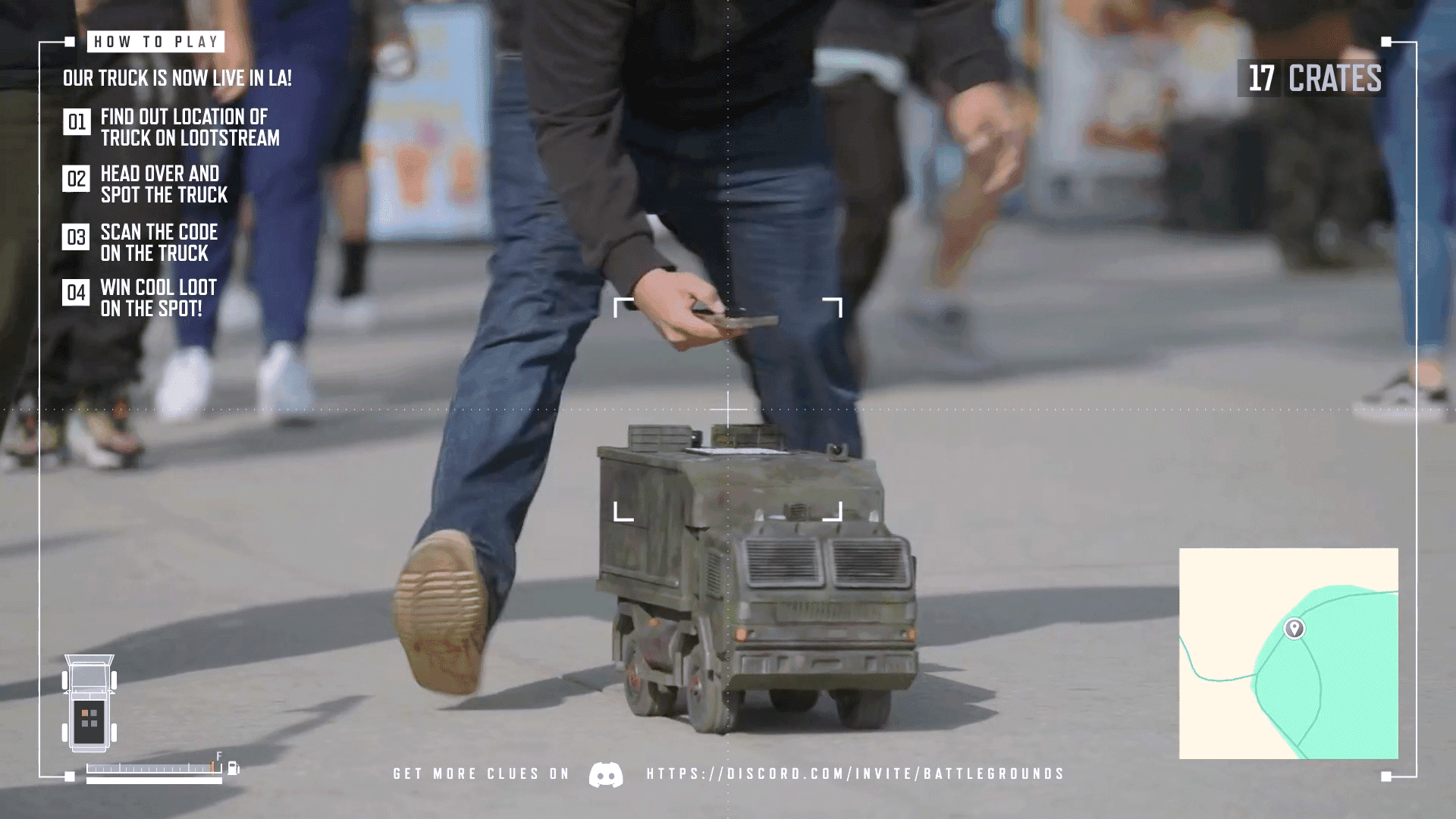 We transformed Los Angeles into a real-life game map and challenged fans to track down the Loot Truck as it cruised the streets, using clues shared on Discord, X, and a Twitch livestream. Discord was ablaze and mobs were running down to hunt the truck, we gave out codes across multiple platforms every time somebody managed to 'shoot' our truck's QR code, while the winner winner themselves managed to score limited-edition loot and crates with of G-coins for that in-game swag.